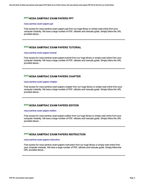 Read NOSA SAMTRAC EXAM PAPERS Ebook Reader online is a convenient and frugal way to read NOSA SAMTRAC EXAM PAPERS Ebook you love right from the comfort of your own home. Yes, there sites where you can get Reader "for free" but the ones listed below are clean from viruses and completely legal to use.
