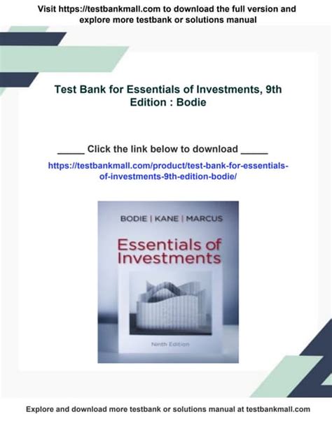 Best TEST BANK ESSENTIALS OF INVESTMENTS 9TH EDITION Ebook Download EBook Sites No Sign Up - As we know, Download EBook is a great way to spend leisure time. Almost every month, there are new Audio Book being released and there are numerous brand new Audio Book as well.