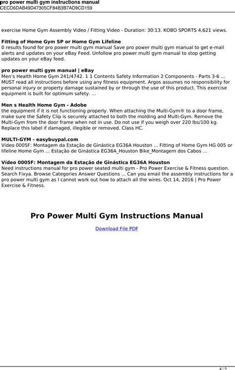 Free Download Pro Power Multi Gym Assembly Manual Ebook Epub By Click Button. Pro Power Multi Gym Assembly Manual Ebook it’s easy to recommend a new book category such as Novel, journal, comic, magazin, ect. You see it and you just know that the designer is also an author and understands the challenges involved with having a good book. You can easy klick for detailing book and you can read it online, even you can download it